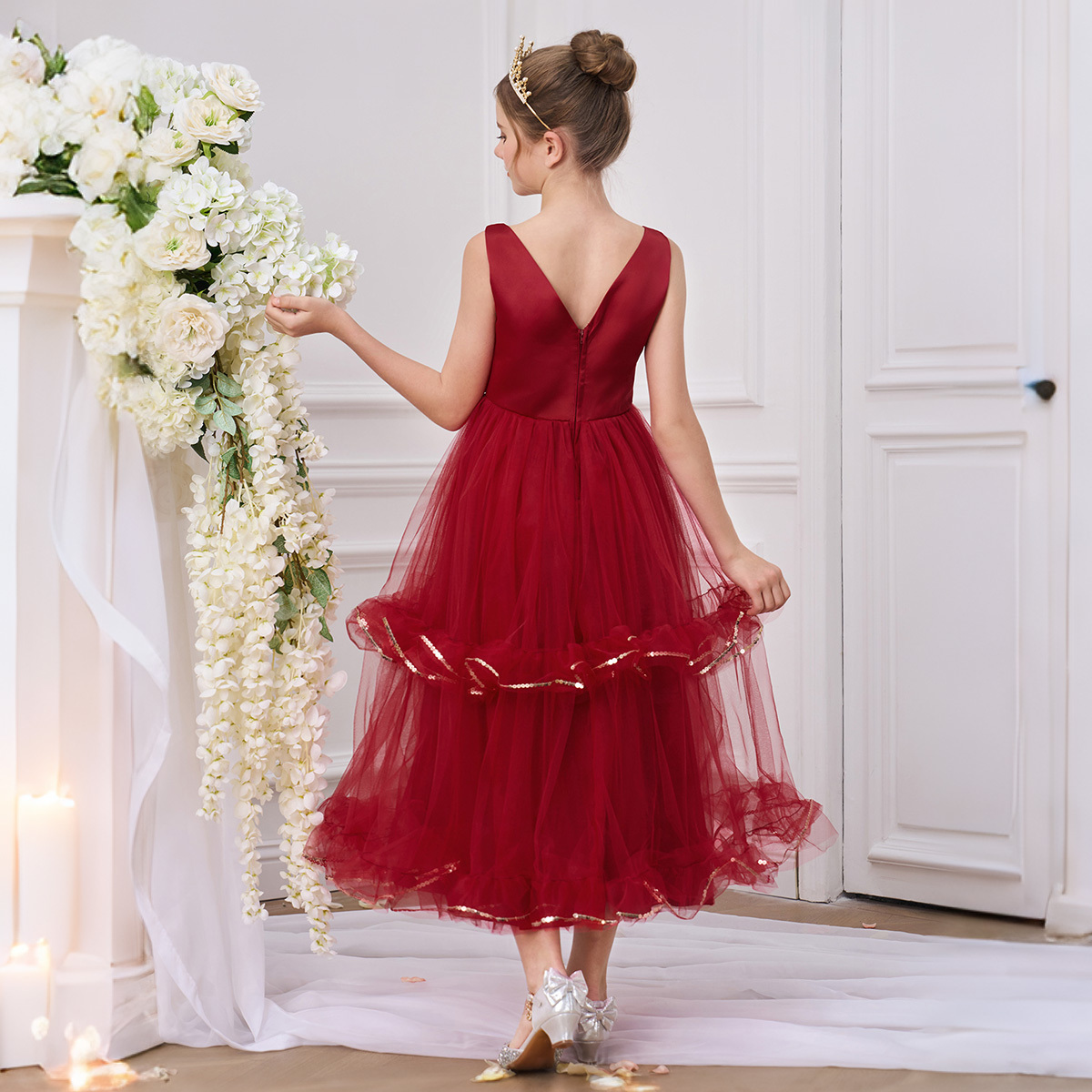 Elegant O-Neck Ball Gown Wedding Pageant Dress (8Y – 10Y)